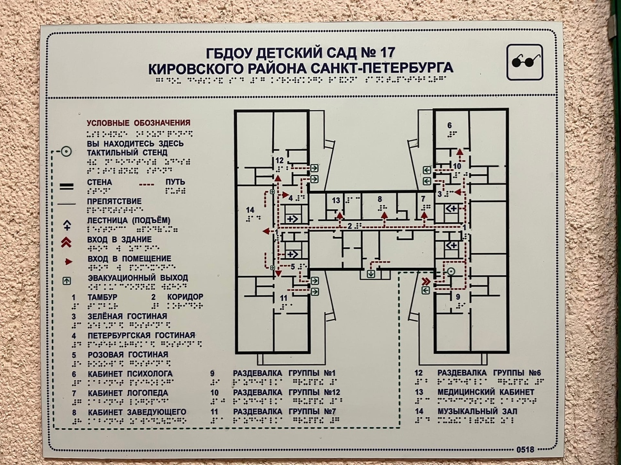 ПРЕДУСМОТРЕНО дублирование надписей, знаков и иной текстовой и графической информации знаками, выполненными рельефно-точечным шрифтом Брайля