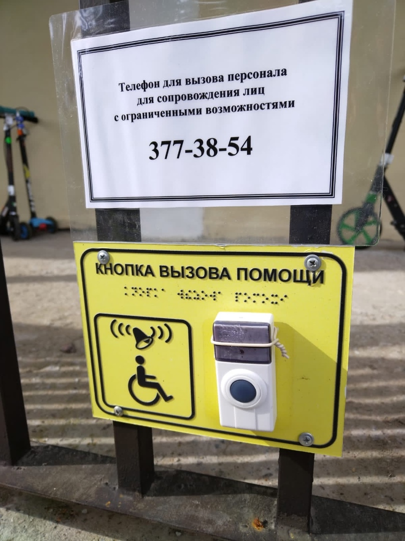 На входных дверях установлена кнопка вызова вспомогающего персонала.(Фото) В учреждении имеются съемные аппарели. (Фото) Внутри здания осуществляется дублирование надписей, знаков и иной текстовой и графической информации знаками, выполненнными шрифтом Брайля. (ФОТО 1, 2, 3) В учреждении предусмотрена помощь оказываемая работниками организации, прошедшими необходимое обучение (инструктирование) (возможность сопровождения работниками организации) Отвественные работники, назначенные приказом руководителя: тел.377-38-54