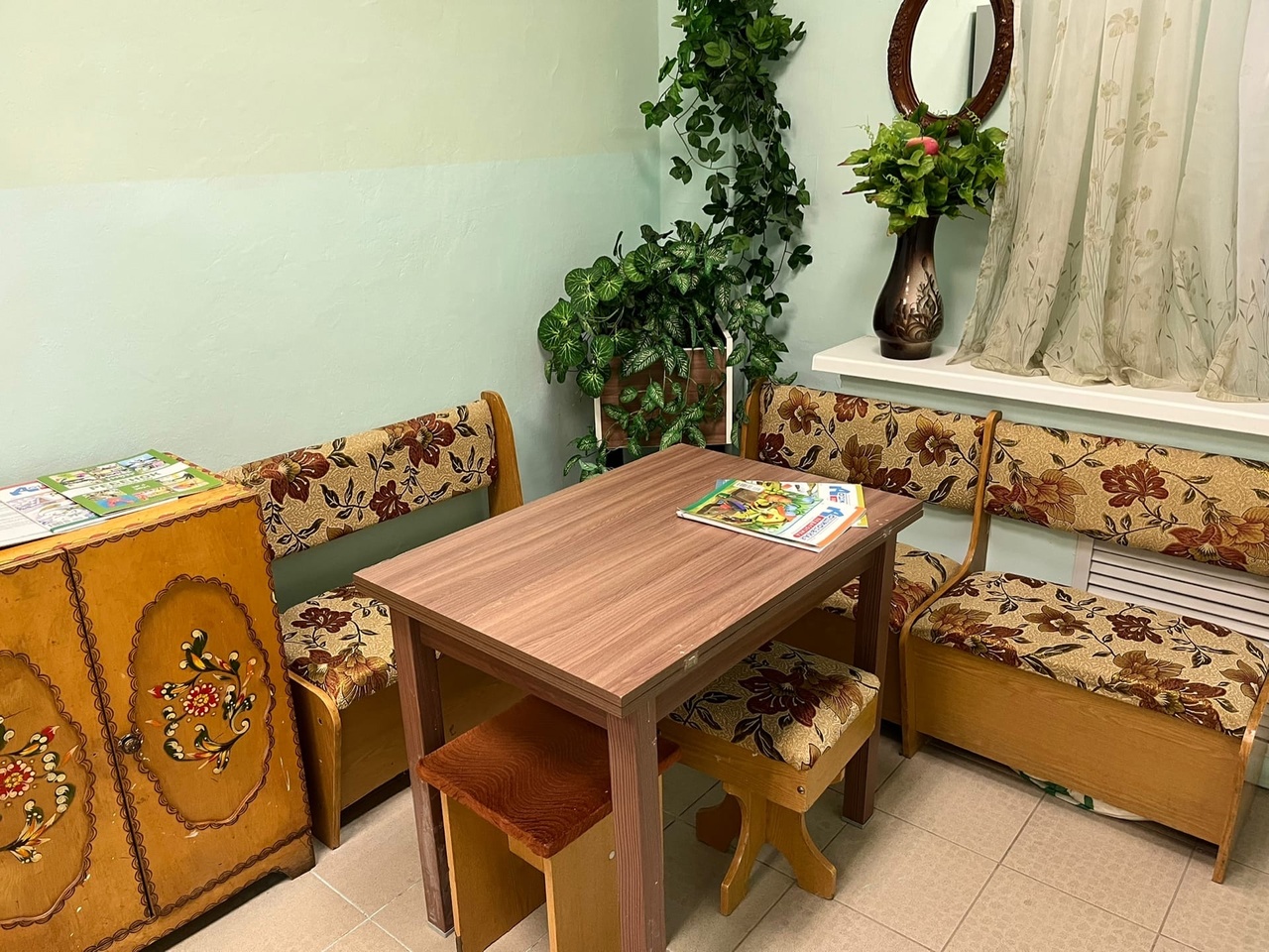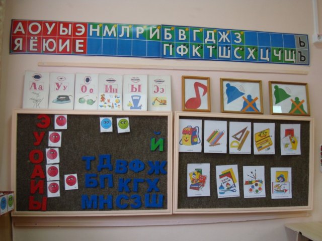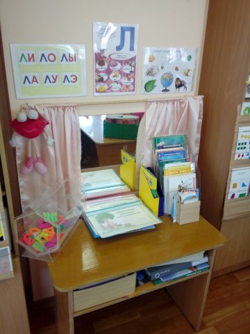 Логопедические кабинета оснащены зеркалами, столами и необходимыми методическими пособиями для занятий.